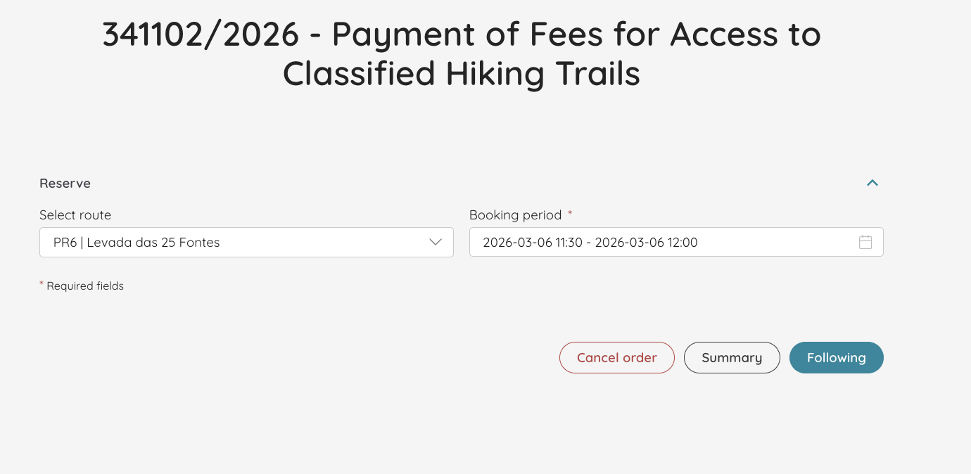 To book and pay for trails in Madeira, the page you’re looking for is this: SIMplifica Madeira. (If you’re on the homepage, you need to click on “Ticketing” [EN version] or “Bilhética” [PT version] and then click on “Payment of Fees for Access to Classified Hiking Trails”).