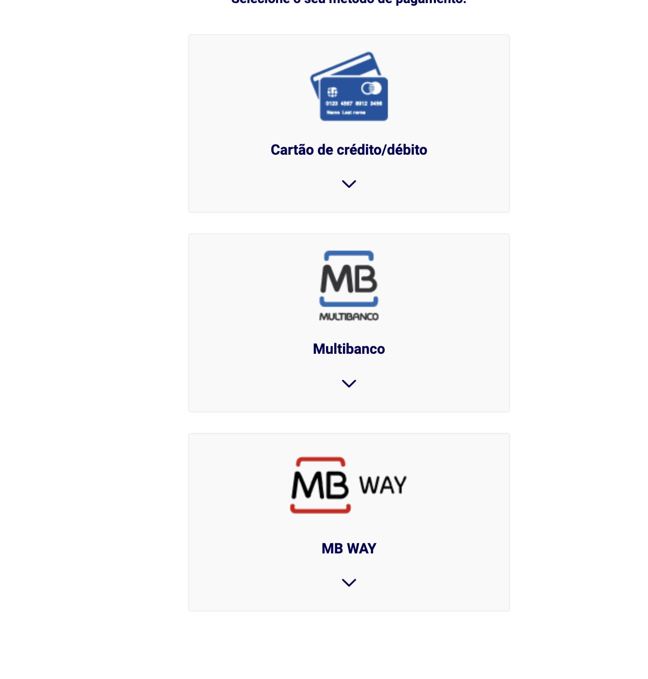 Click on “cartão de crédito/ débito” (Credit/debit card) and then click on the blue bar saying “seguinte” (meaning next). Another page will open where you should enter your card details. No other payment method is accepted – no Paypal, Apple Pay, Google Pay, or nothing of the sort.